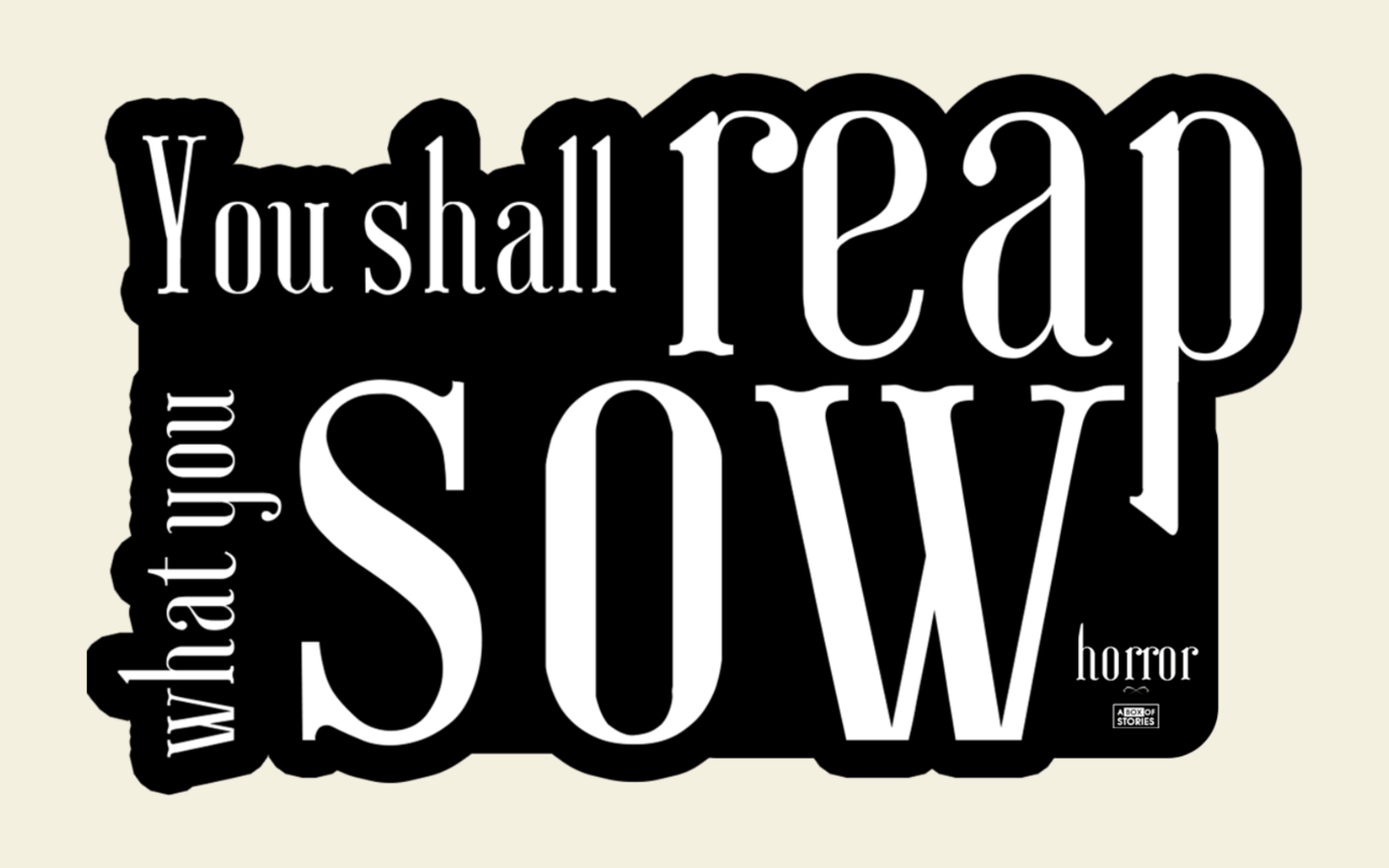 The magnetic sticker is the tagline of Bone Harvest. The eerie words “You shall reap what you sow” was something that jumped out at us, as a must have on our refrigerators.