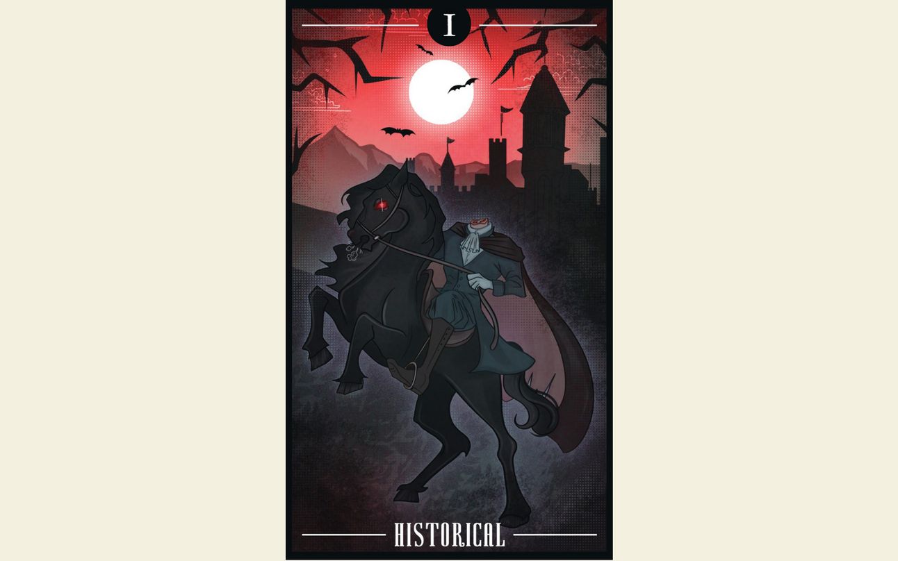The collectible graphic card in the box is another nod to the historical sub-genre. Our design team was fascinated by the headless horseman. The debate was about whether he should be holding his severed head in his hand or should it not be a part of the scene.